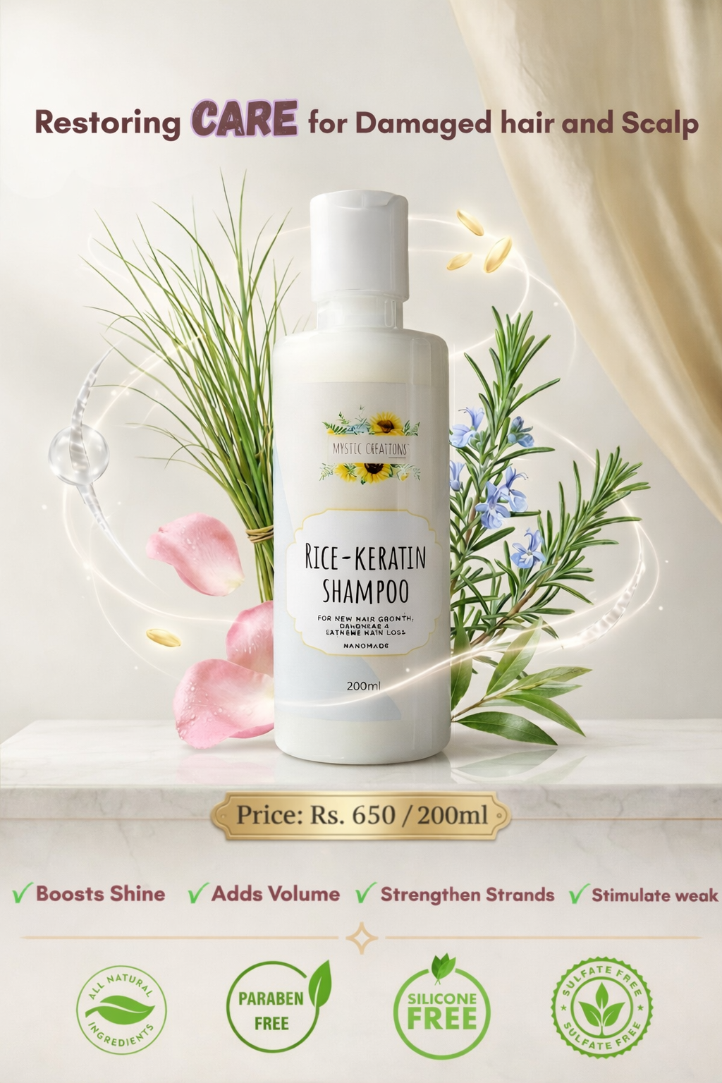 MysticCreations Rice & Keratin Repair Shampoo – 200ml
